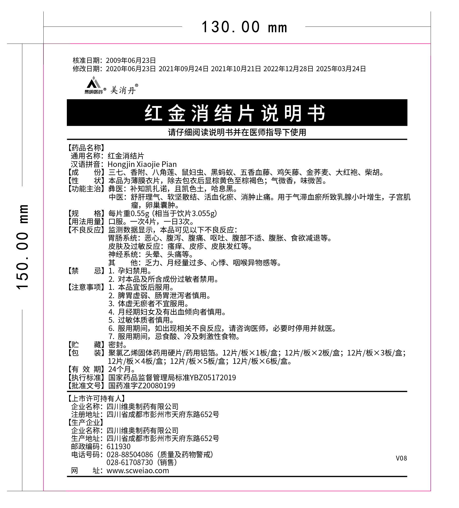 關(guān)于紅金消結(jié)片說(shuō)明書(shū)變更的通知